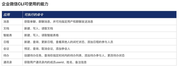 3 月 30 日,企业微信在 GitHub 上线了 CLI 开源项目,开放消息、日程、文档、智能表、会议、待办、通讯录共七大核心产品能力,支持 Claude Code、Codex、WorkBuddy、QClaw 等主流 AI Agent 调用。