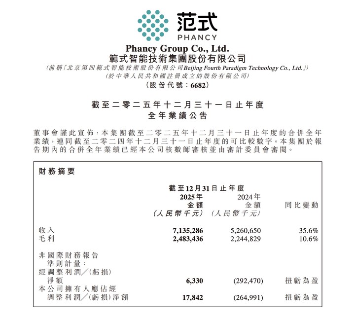 范式智能首次实现全年盈利,全年营收 71.35 亿元